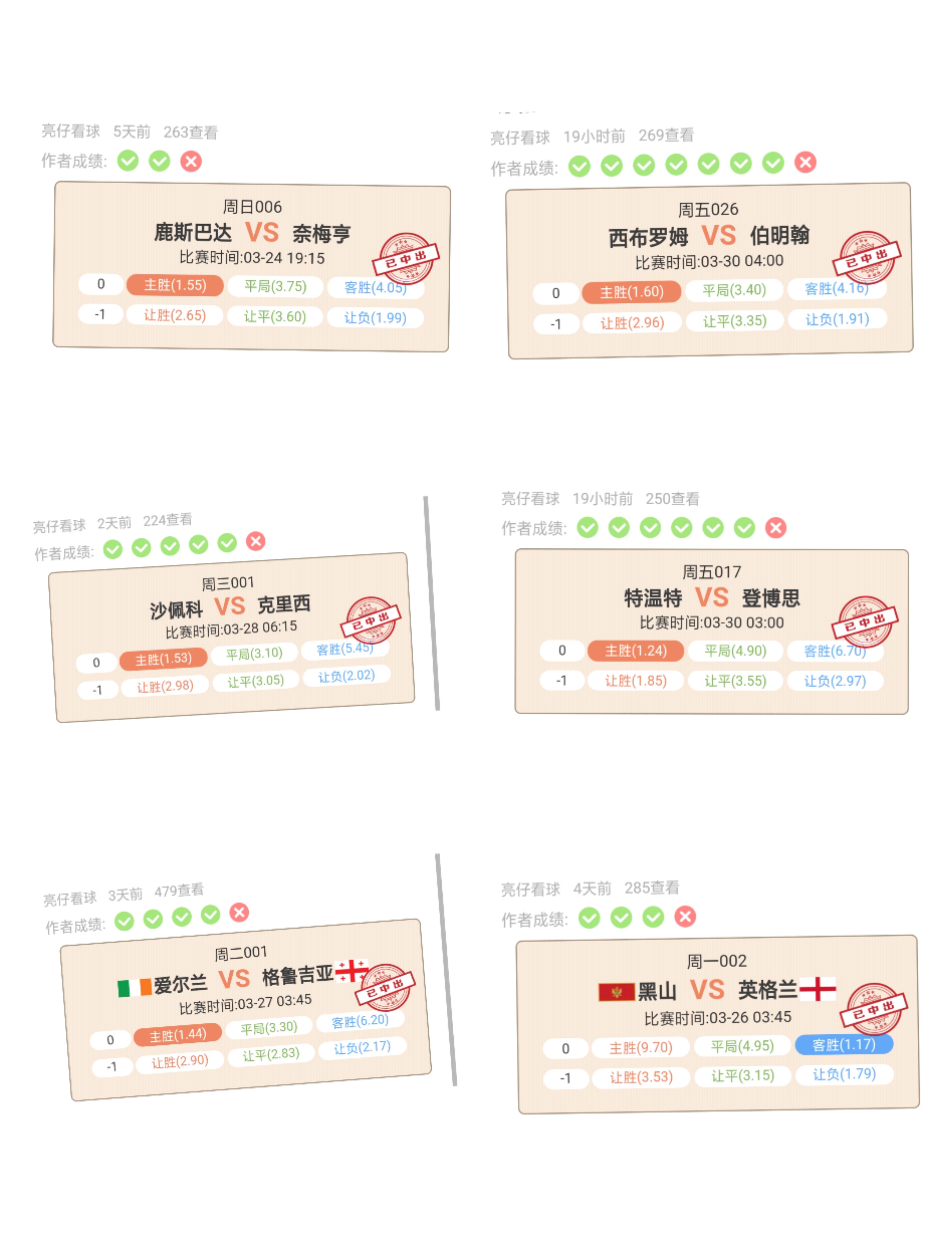 双方近6次交战,水晶宫3胜1平2负占优。从战意上看水晶宫尚未完成保级任务,面对英超鱼腩必将全力以赴,反观哈德斯菲尔德降级基本成为定局,恐无心恋战,看好主队全取三分。