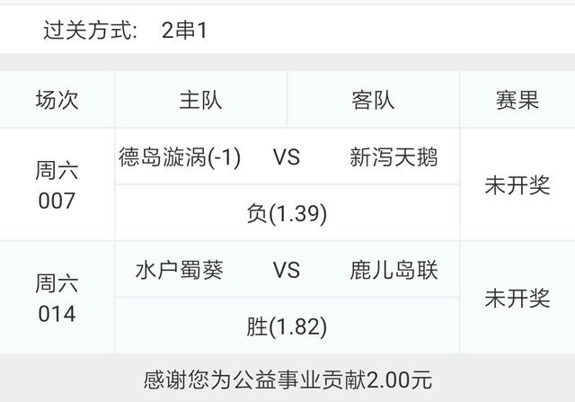 昨日2串1顺利红单,可惜博单三串四完全错了方向,比较遗憾。今天有日职比赛,经过仔细分析,精选了一组低赔2串1,分别是德岛漩涡VS新泻天鹅和水户蜀葵VS鹿儿岛联。