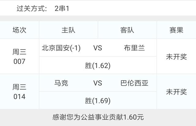 这几天总是差那么一点,郁闷。今天晚上比赛比较多,选了一场亚冠和一场西甲组了一个2串1,又选了几场比赛组了一个博单。