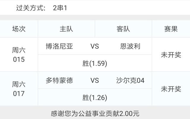 下午场踢出了两个平局,遗憾黑单。今天的晚场选了015博洛尼亚VS恩波利和017多特蒙德VS沙尔克04