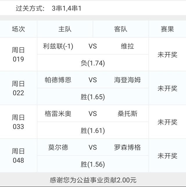 另外选了几场比赛组了一个四串五。