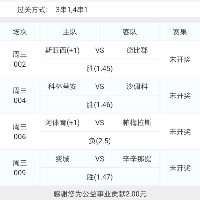 另外选了几场比赛组了一个博单四串五。