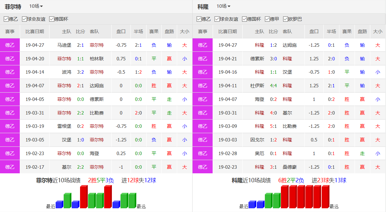 主队菲尔特本季德乙31轮后积38分暂列第13,高出降级区8分。上轮德乙客场1-2不敌弱旅马格德堡,球队近3轮联赛1平2负状态低迷。