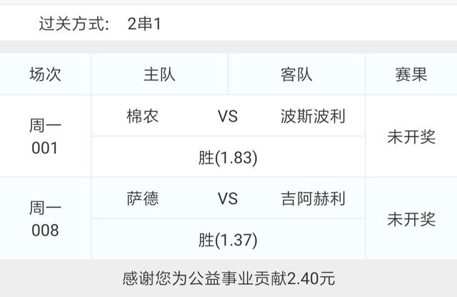 今天选了两场亚冠组了一个2串1,分别是001塔什干棉农VS波斯波利和008萨德VS吉阿赫利。