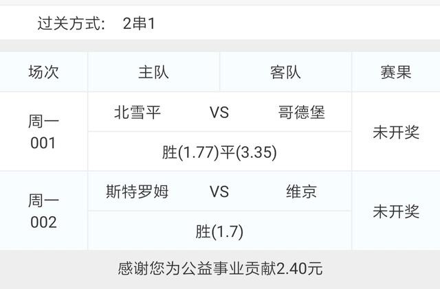 今天的比赛不多,一共三场,2串1选了001北雪平VS哥德堡和002斯特罗姆VS维京!