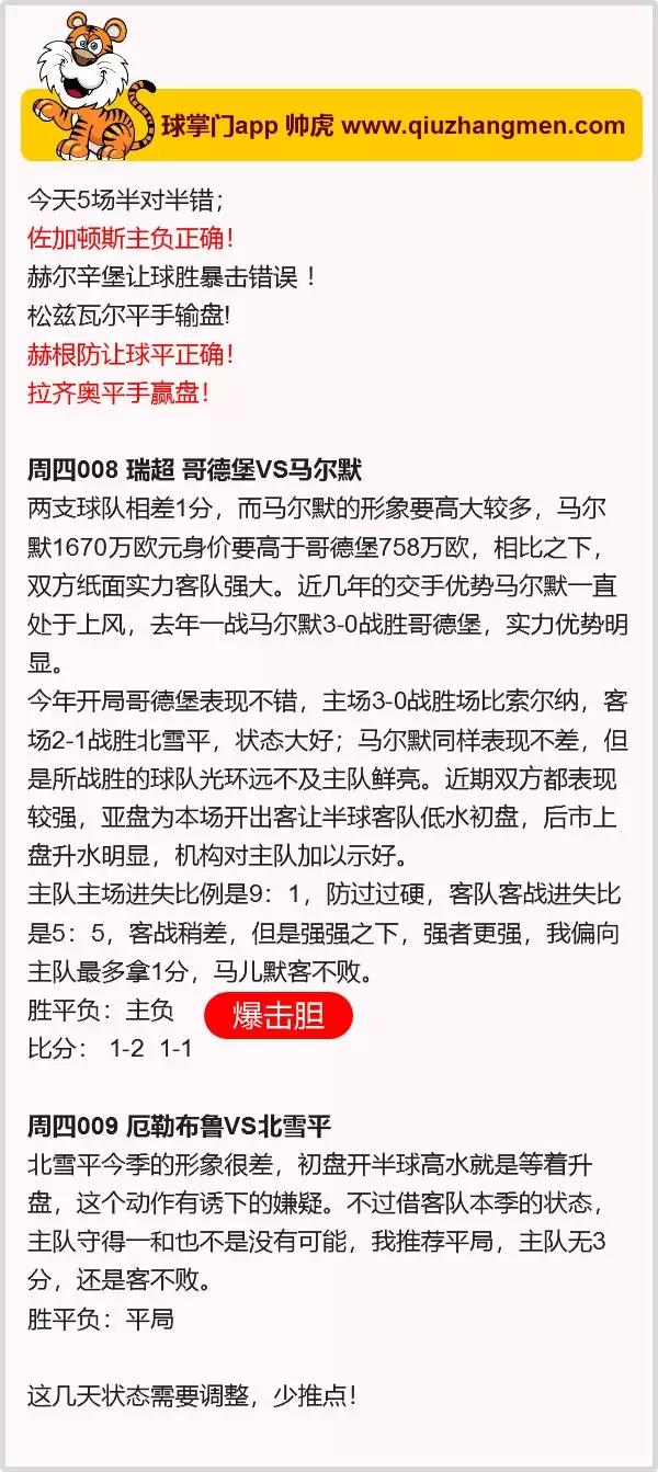 球掌门帅虎 | 竞彩周四2场赛事推荐