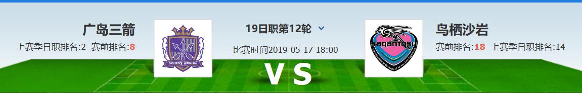 强队广岛三箭本赛季日职联11轮积17分排名第8,比上赛季同期少11分,日职联前11轮场均仅失0.7球,并列第5少。广岛三箭已提前一轮从亚冠小组出线,因此下周中的亚冠可以尽遣替补上阵,上轮做客1:2遭弱旅仙台七夕逆转,球队在第85分钟后罕见地连丢2球。