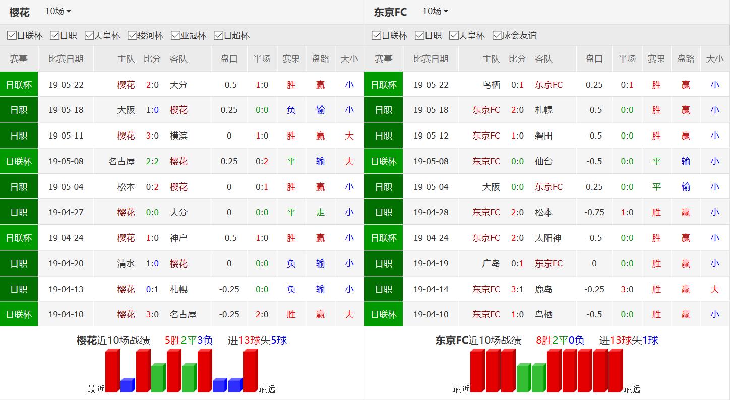 本场主队大阪樱花本赛季日职联12轮积14分排名第11,比上赛季同期少6分。近13次J1对阵东京FC8胜3平仅2负,上赛季主客场均1:0取胜。近2个联赛主场1胜1平且都不失球,包括0:0战平强势的大分三神。上轮客场0:1不敌德比对手大阪钢巴,近6轮有4场都被零封。