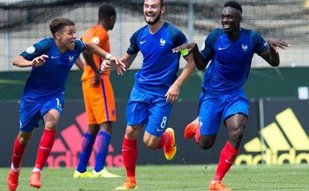虽然意大利是本届欧青赛的东道主,不过前面的比赛过后,赢球的德国和法国成为夺冠的前两名热门球队。本届法国国青队继续由主帅里波尔带队,从首战对英格兰的首发来看,他选择了里昂上赛季的主力的双后腰组合图萨特和奥亚尔,后者已经被市场估价超过4000万镑;在中后卫上,球队使用了莱比锡红牛的中卫组合科纳特(又一个估价超过4000万的球员)和乌帕梅卡诺。这样的做法很明显,球队中后场球员之间会有更多的默契。在进攻线上,里昂上赛季打入15球的前锋穆萨·登贝莱和里尔主力前锋班巴(13球)搭档,进攻火力也不成任何问题。