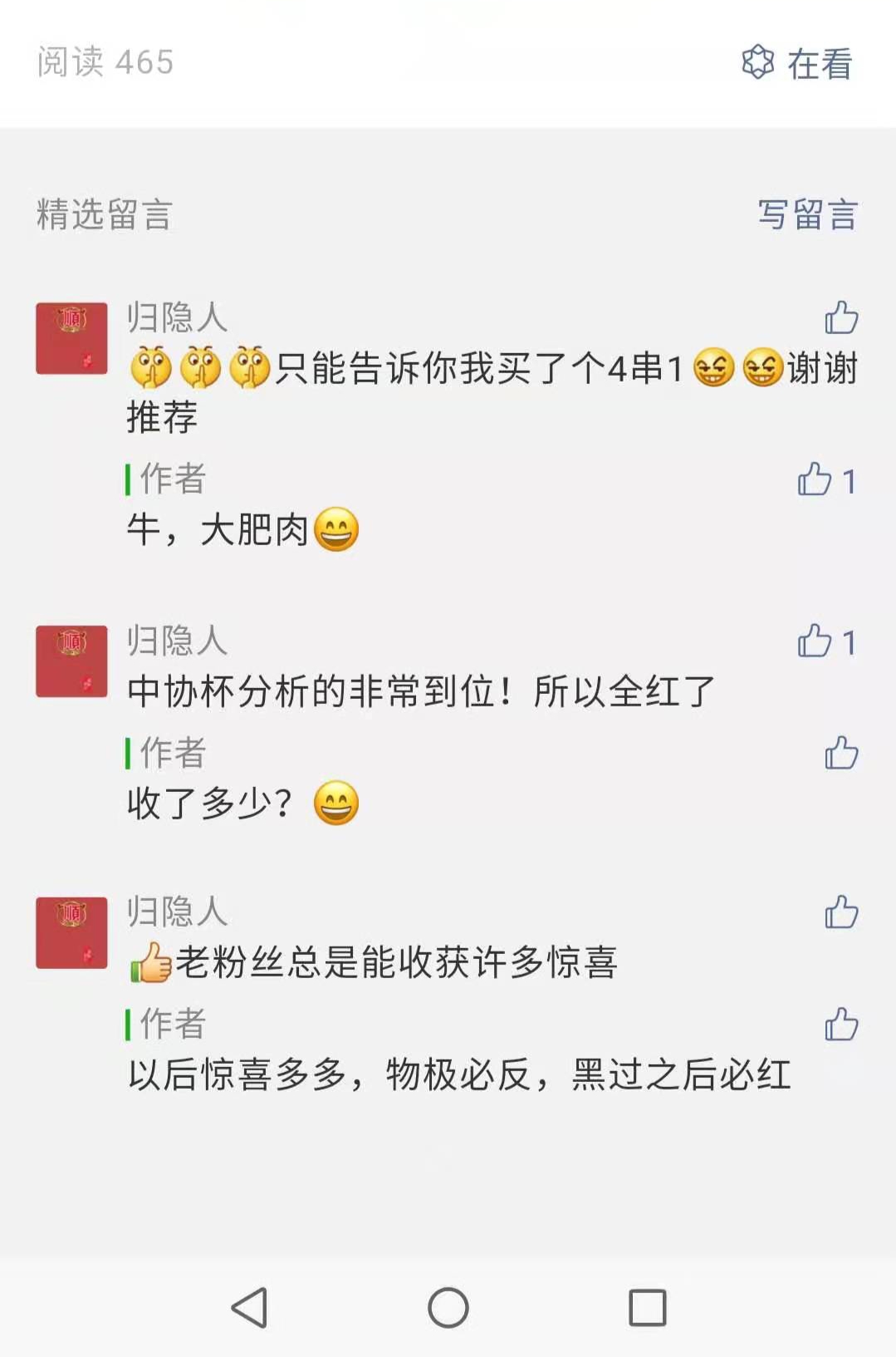 五星红旗在天安门广场迎风飘扬,昨天有一位朋友居然把昨天四场足协杯串在一起了,妥妥的收米。恭喜这位朋友!昨天七中六,有兴趣的朋友可以总结一下,如果你黑了可以看看庄家是如何套路你的。