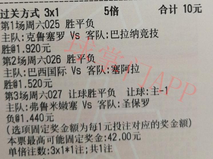 三场巴甲早盘推荐,后期变化暂不考虑,出票定格一下赔率。基它几场参考