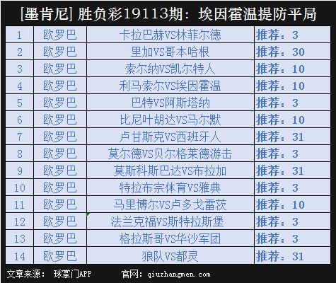 胜负彩19113期竞猜14场欧罗巴附加赛第二回合,首回合的赛果或影响本轮赛况,8月29日停售,敬请留意。