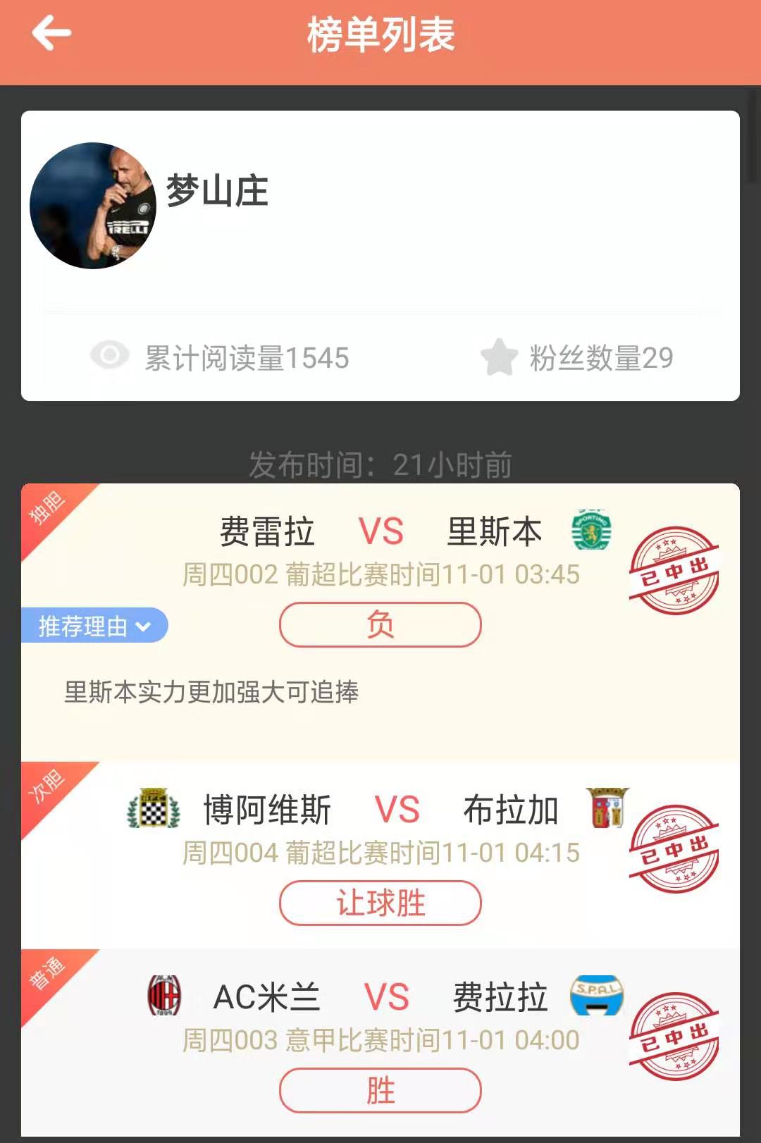 首页/ 赛事正文补时绝杀 以52分的成绩暂时登录今日的榜首。昨天的擂主 “我为球狂” 预测了巴甲赛事,目前未完场,积分暂时落后,排名第五。