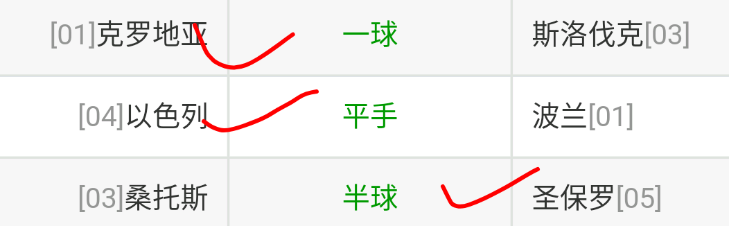 昨晚纸醉金迷,今天三场球,打勾代表方向参考。去年世界杯加群的朋友应该很熟悉。祝大家好运!