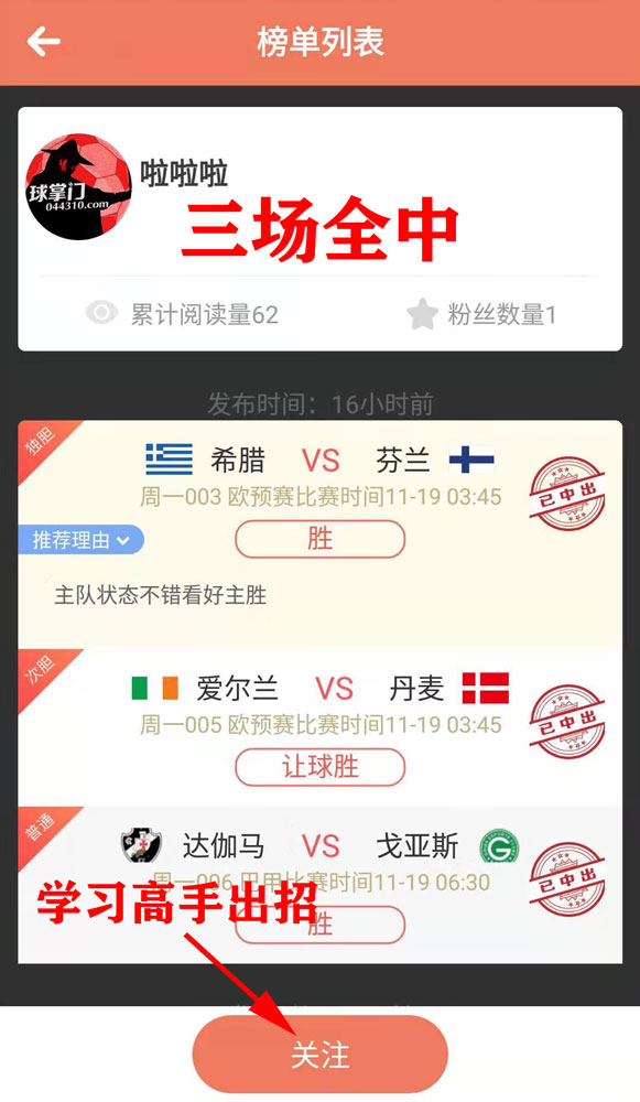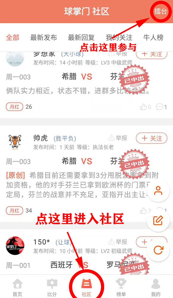 球掌门是高手的象征,是来自全国各地,五湖四海的足球高手聚集地,社区内公开交流,专门为大家打造了发现高手,统计高手,跟踪高手的方式,让大家在愉悦的竞猜