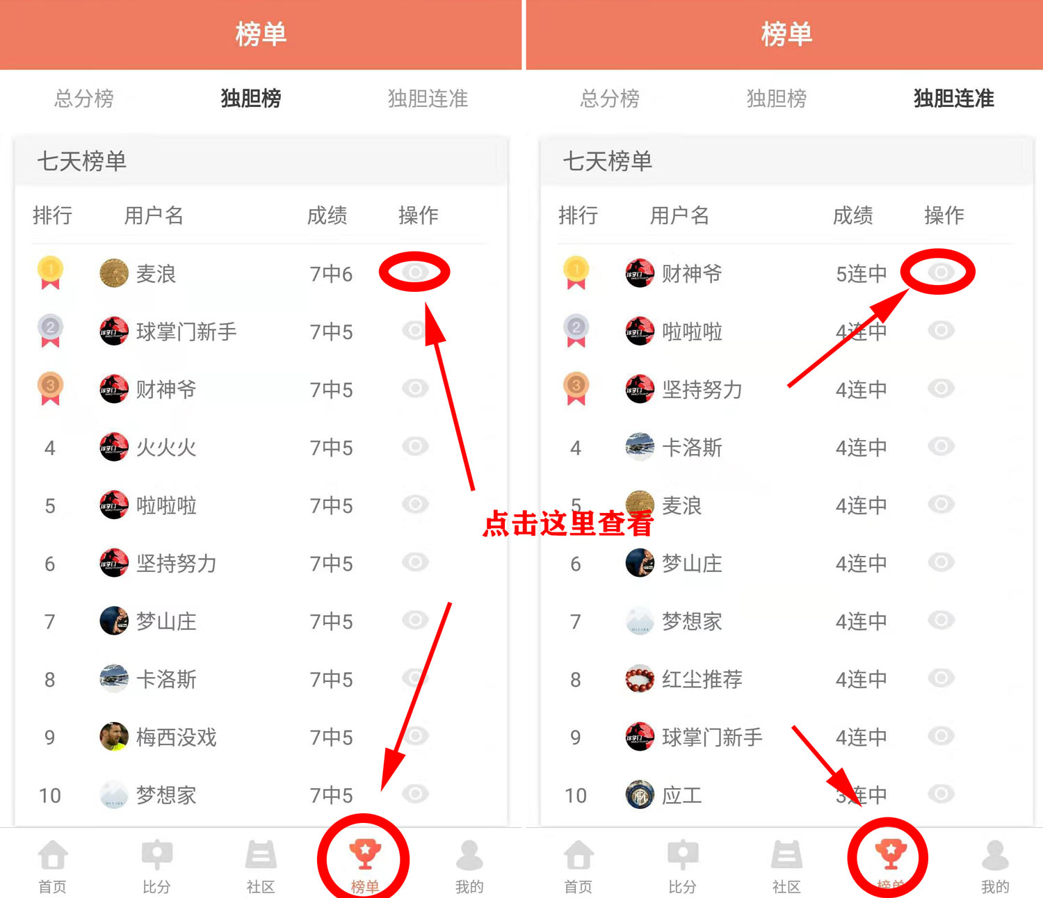 麦浪昨天2场中出,独胆7中6,继续稳居周榜第一名;