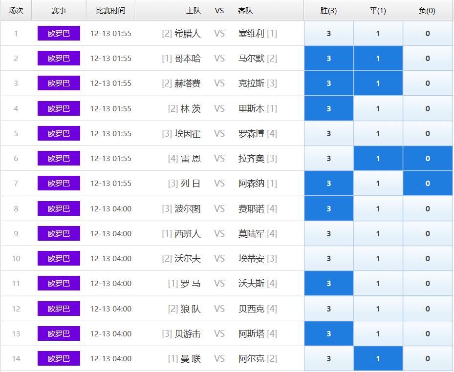 3.两队同积9分,赫塔费之前作客2:1力克克拉斯达诺尔,所以本轮打平也能凭借相互交手成绩占优出线。主让半一,双选31较稳。