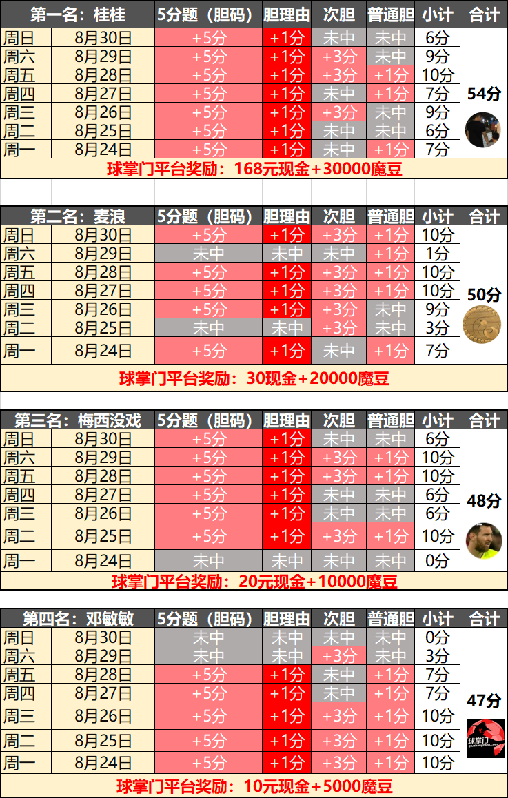 第19046期 周榜1名 梅西没戏(积分 56分)