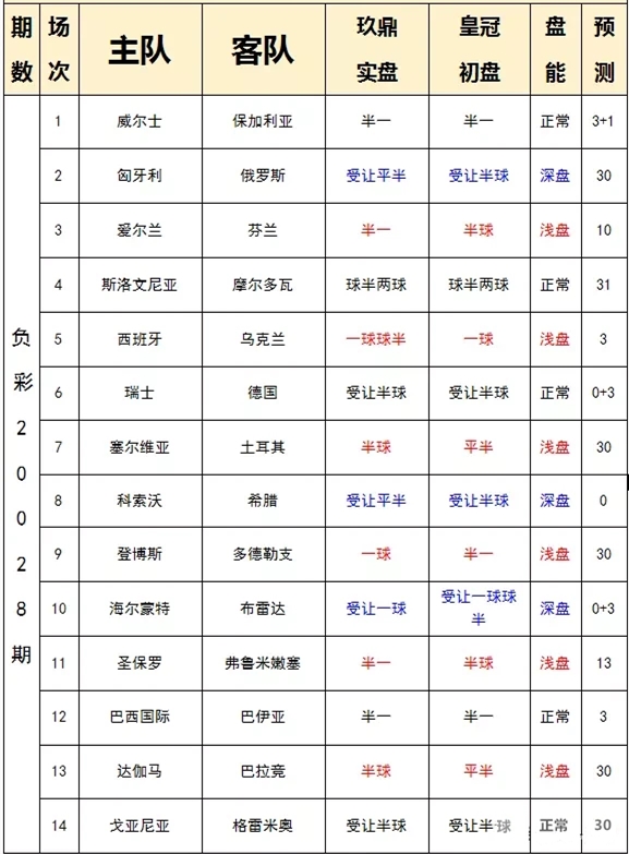 题外话:欧国联其实就是高大上的友谊赛性质,也是练兵,虽然增加了奖金,但是吸引力并不足,上个赛季的欧国联,也是让昔日的冠军德国降级,黑马冰岛降级,克罗地亚降级,主要还是看态度,这个赛季直接跟世界杯参赛名额挂钩,这就显得更有吸引力了,这个赛季的欧国联分组有变化,欧国联还是分为甲乙丙丁4个级别,上个赛季甲乙级别每个小组只有3支球队,而本赛季则是扩充到每组4支球队,原本降级的德国,冰岛,波兰,克罗地亚等队也是留在了甲级联赛中,这种看似不错的分组模式,其实也是欧国联的一个如意算盘,既增加了甲乙联赛的观赏性,也会让强强对决博收视率,赚钱才是欧国联的核心意图,不仅是欧国联,五大联赛近几个赛季也是在玩博眼球的策略,金元足球下,竞猜越来越难,我是感同身受,想必大家也是有同样的想法,下面简单说下本期的胜负彩