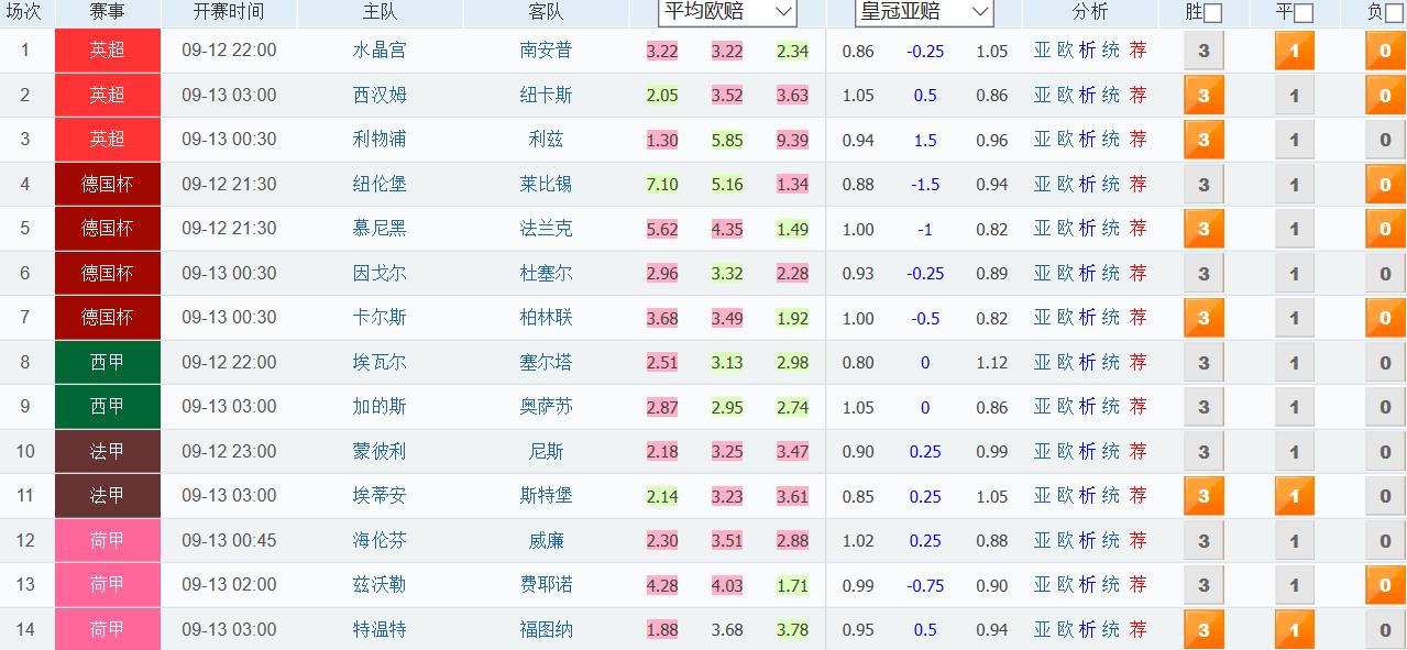 昨晚英冠第1轮,刚刚降级的沃特福德主场1-0力克米堡,第11分钟卡斯卡特打进制胜球。其他场次,德国杯第1轮,柏林赫塔客场4-5不敌德乙的不伦瑞克,爆出大冷,美因茨则是客场5-1大胜低级别的哈韦尔斯;法甲第3轮,里昂客场与波尔多战成0-0平;荷乙SBV精英客场3-1大胜多德勒支,但之前两连胜的坎布尔主场0-2不敌前进之鹰,爆出大冷。