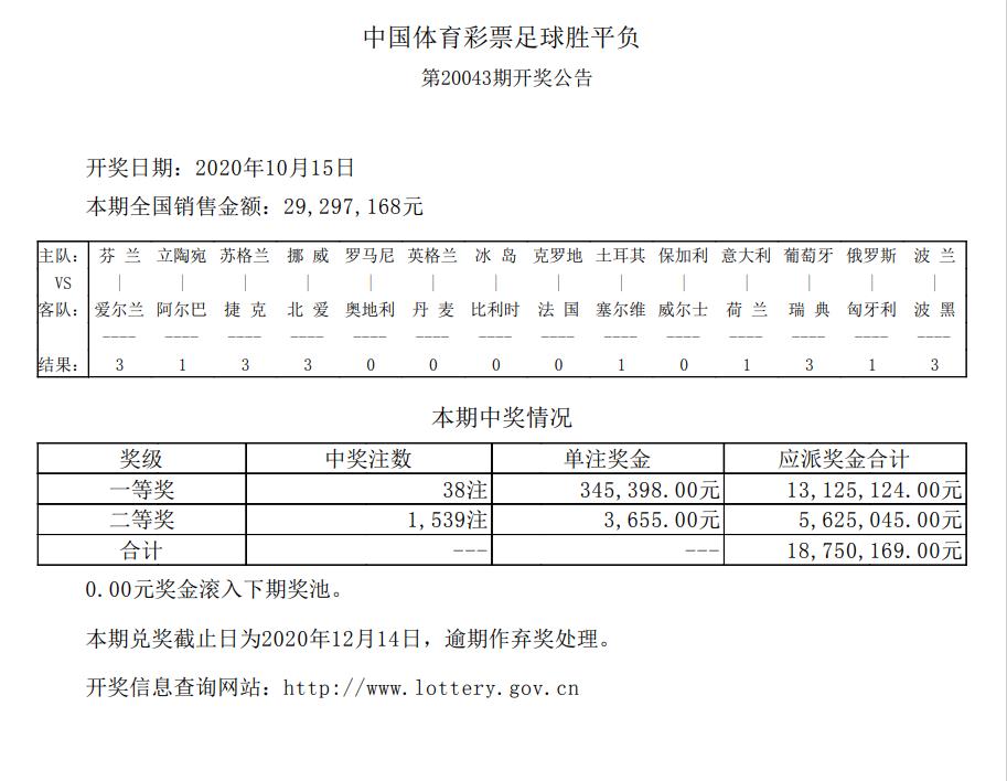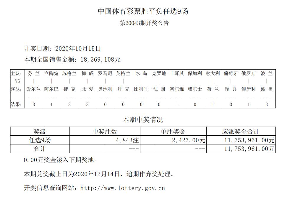 温馨提示:本期兑奖截止日为2020年12月14日,逾期作弃奖处理