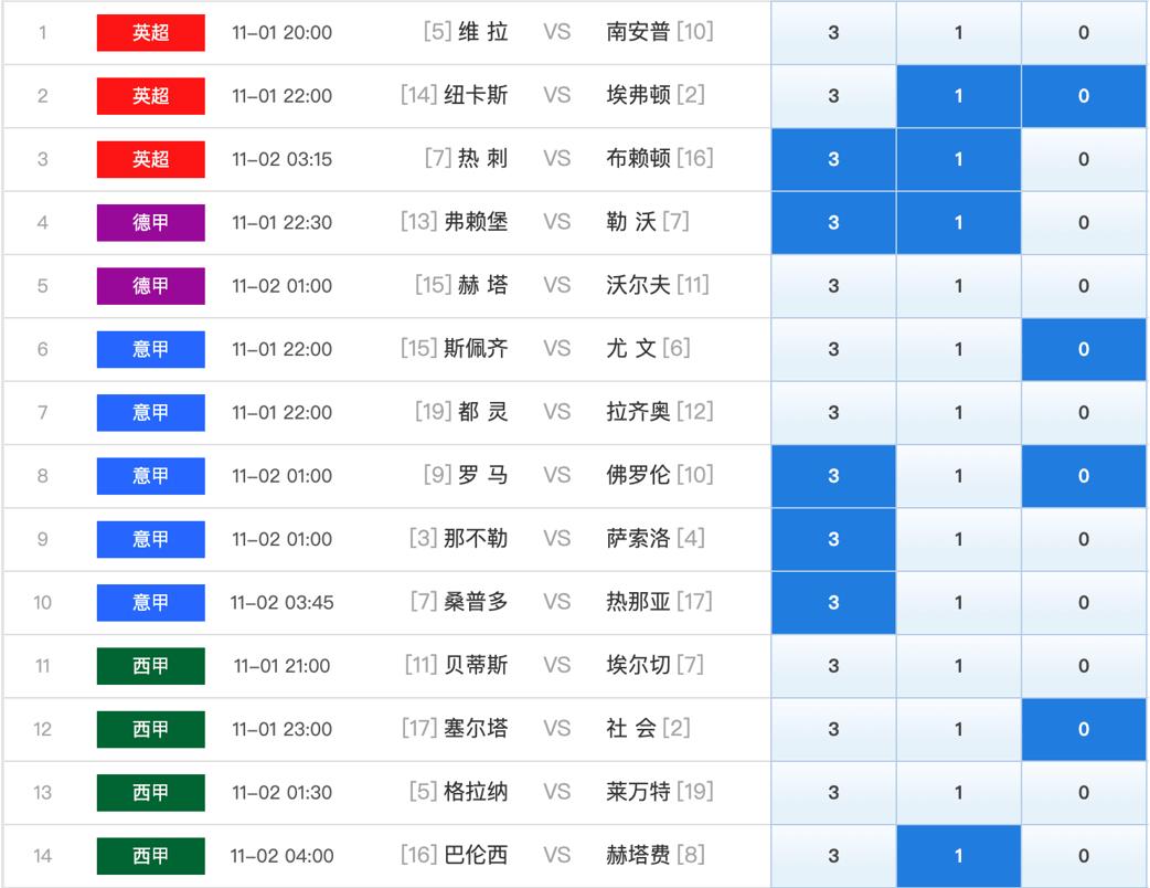 4.弗赖堡近期联赛中3平1负,表现一般,不过阵容齐整以逸待劳。勒沃库森周中欧联杯客场0:1不敌布拉格斯拉维亚,联赛仍然保持不败金身。客让半球高水,有点ZB,双选31。
