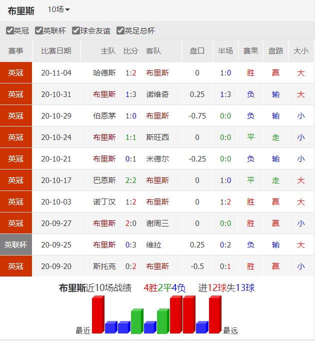 布里斯托尔城在联赛第10轮过后5胜2平3负积17分排名英冠联赛第7位,距离榜首位置仅有5分。本赛季5场客场联赛赢下了3场仅仅输掉了1场,球队目前在客场的发挥出色。客场打进8球的布里斯托尔城是目前英冠联赛客场进球第4多的球队,客场进攻效率属于英冠联赛非常出色的水平。近3场主场比赛1胜2平未尝败绩,并且3场比赛中打进5球进攻效率依旧居高不下。上轮联赛客场2-1击败哈德斯菲尔德,杰伊-达席尔瓦一射一传助球队终结5轮不胜的尴尬近况。近5场客场比赛布里斯托尔城3胜1平1负表现非常出色,目前客场拿分比主场多了3分。