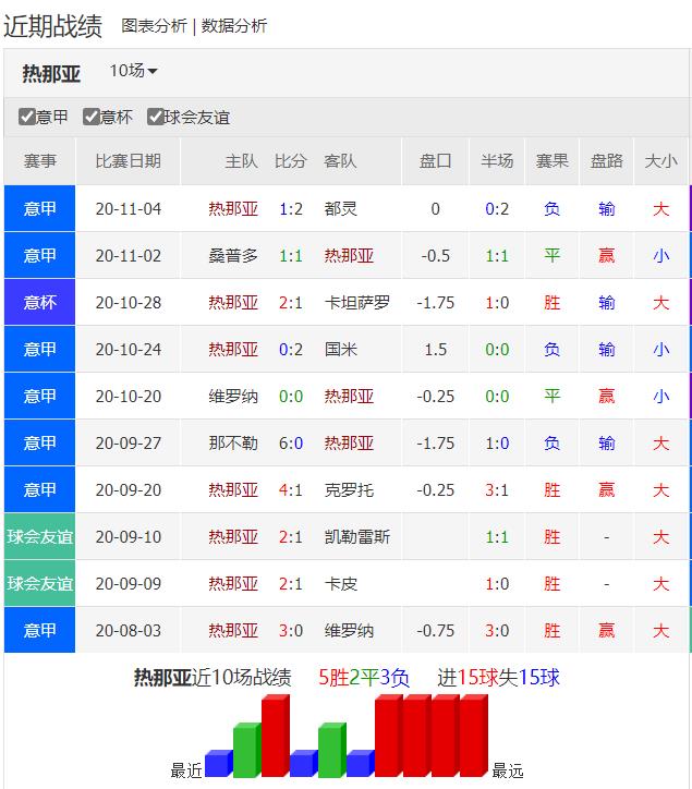 热那亚上次位列意甲上半区还是14/15赛季,之后老帅加斯佩里尼离队,球队一年不如一年。热那亚场均只有9.2次射门意甲倒数第1,打入2球的年轻前锋斯卡馬卡是队内唯一进球超过1球的。已经连续4场各项赛事主场作战,避免了疫情事情的客场舟车劳顿,本轮继续主场作战。