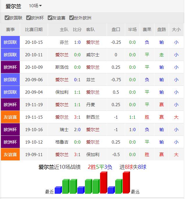爱尔兰目前世界排名第36位,欧洲排名第20位,上赛季排名欧国联B级4组第三位,本赛季将继续出战B级赛事。内坐拥热刺边卫多尔蒂,纽卡中场亨德里克,维拉中场霍利哈尼,谢菲联队长伊根等多名英超效力名将,球队实力面在线。进入21世纪后两次在友谊赛上交手英格兰均取得了平局,两次比赛分别在各自主客场进行的情况下均以平局收场。在10月份的欧预赛附加赛倒数第二轮的比赛上0-0战平对手后点球不敌斯洛伐克遗憾落败,无缘明年举行的2021年欧洲杯赛事。近来英超表现出色的勒温、格拉利什、沃德普劳斯等球员再次入选,而曼城中场菲尔福登在经历了负面新闻后也再次入选了国家队阵容中。主力防线球员凯文朗效力于伯恩利,伊根是谢菲联队长,多尔蒂科尔曼等均为英超名将,英格兰队的进攻球员与其都已对位多年,面对对手时的表现发挥极有可能与联赛相似本次爱尔兰的25人大名单中所有球员均在在英格兰联赛踢球,多名球员在英格兰联赛效力多年,对于在英格兰进行的比赛基本上没有适应问题,在没有观众的情况下几乎没有主客场之分