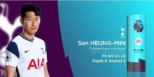 孙兴慜在10月份3场英超比赛中打进4球并送出了2记助攻,帮助热刺取得2胜1平的成绩。在评选中,孙兴慜击败了凯恩、格拉利什等人,成功当选英超10月最佳球员。