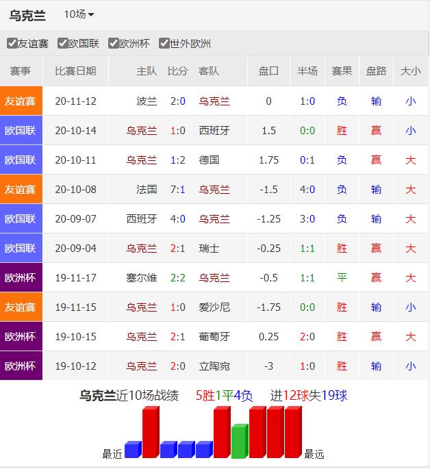 乌克兰国际排名第23,欧洲第15。目前在欧国联(A)排名小组第3,与第2名德国同分。阵中拥有顿涅茨克矿工两位归化前锋马洛斯和莫拉耶斯,亚特兰大前腰马利诺夫斯基和西汉姆联前锋亚莫伦科也入选国家队,前场牌面不差。在本场比赛前的友谊赛中客场0比2不敌波兰,今年6场国际比赛有5场丢球,防守状态不佳。在0比2不敌波兰后今年客场比赛吃到了3连败的苦果,而且一共丢掉13球,客场防守状态堪忧。