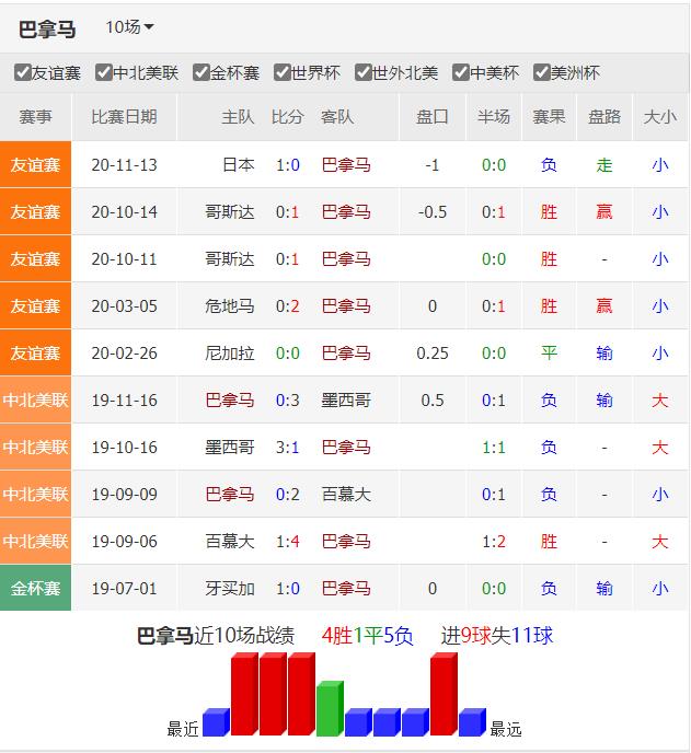 北美球队巴拿马目前世界排名77位,目前在北美落后于加拿大、美国、哥斯达黎加等北美强队。现役头号射手为效力于厄瓜多尔联赛的前锋加布里埃尔-托雷斯,国家队赛事出场87场打进13球排名总榜第三。队内身价最高球员为效力于安德莱赫特的右边卫穆里略,24岁的他目前身价达到了400万欧元排名巴拿马队内最高。在13号的友谊赛上在奥地利的中立场地上0-1不敌日本队,场面不在下风的巴拿马最终遗憾送点输掉比赛,门将梅希亚78分钟染红。在输掉与日本队比赛前友谊赛上是拿到了客场三连胜的,其中包括10月11与14号面对哥斯达黎加拿到的两连胜。