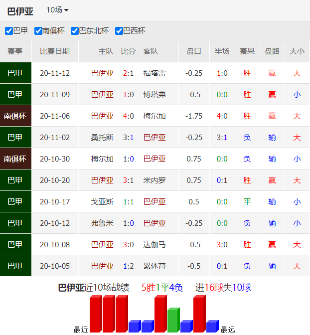 中游球队巴伊亚本赛季20轮过后积25分联赛排名第9(上赛季巴甲排第11)。上个客场1-3不敌桑托斯,最近4个客场1平3负状态堪忧,上轮联赛主场2-1力克福塔雷,各项赛事取得3连胜,球队竞技状态尚佳。最近3场比赛打进7球,近期球队进攻端火力十足。