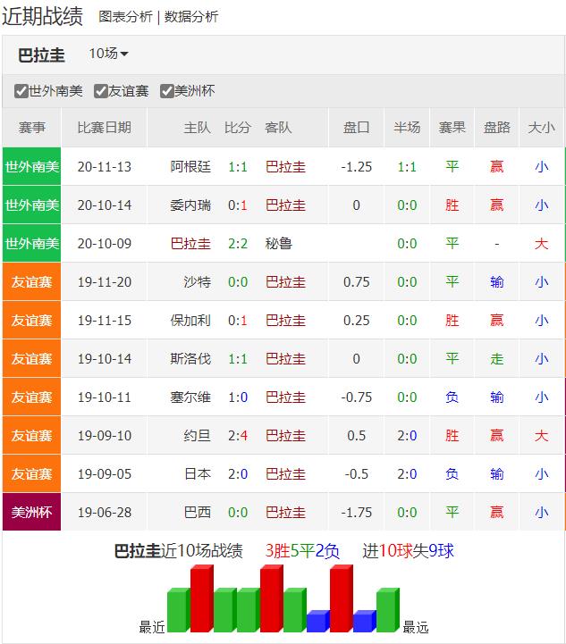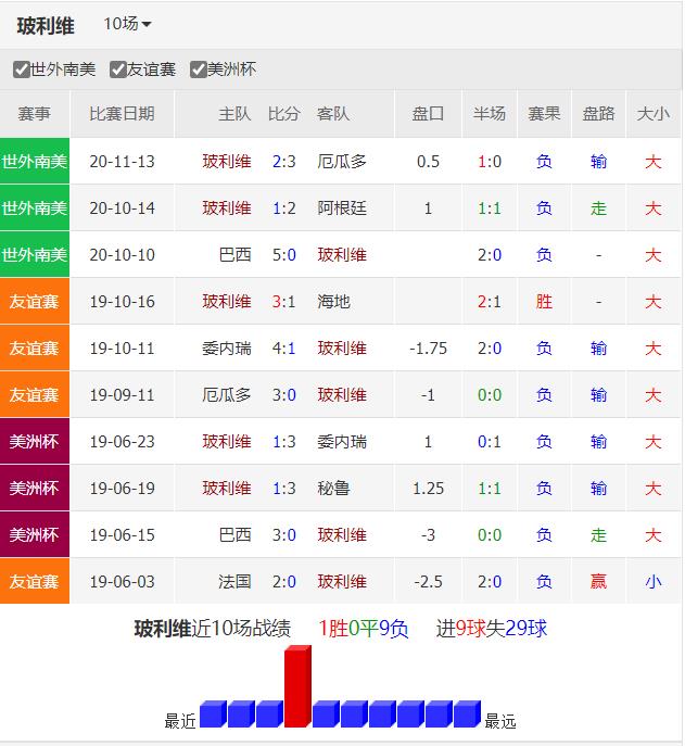 玻利维亚过去6仗各项赛事输足5仗,而外围赛头3仗也以失利告终,均场失球数多达3.3球,此番面对近况稳定的巴拉圭,玻利维亚劫数难逃。
