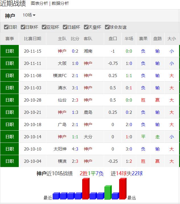 传统豪门浦和红钻本赛季日职联28轮积42分排名第9,近年整体表现一般。本赛季联赛客场7胜3平4负,其中4场败仗均是拜实力强于神户的对手所赐。重心已在即将开打的亚冠上,为避免受伤,球队在比赛中一般都不主动拼抢。上周末以主力班底做客2:6遭3连败的横滨水手横扫,本赛季第2次遭遇6球惨败。上轮之前已连续8轮最多丢1球,正是得益于慢节奏踢法,但神户和上轮打爆浦和的横滨风格类似。