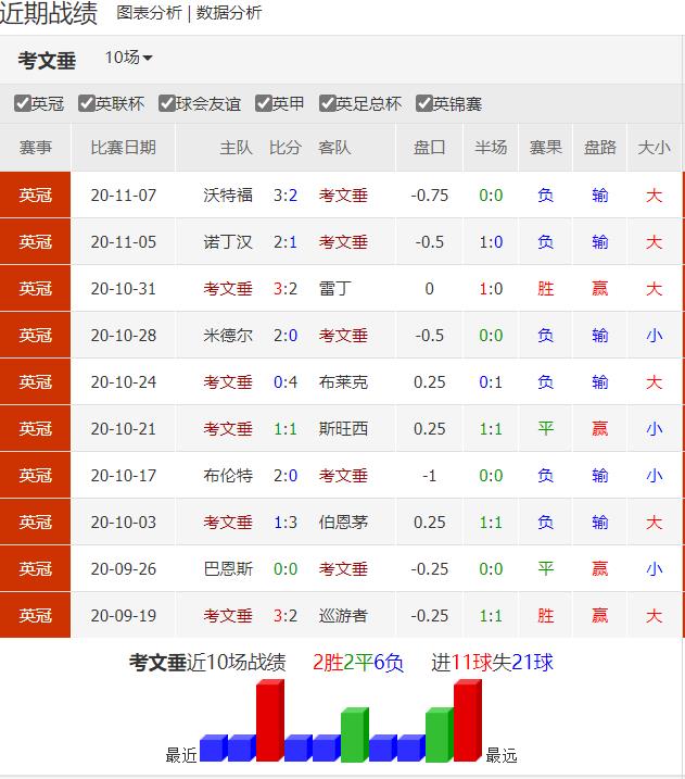 首页/ 赛事正文考文垂目前11轮过后取得了2胜2平7负的战绩积8分领先降级区球队仅仅1分。近4次主场面对伯明翰各项赛事中取得了2胜2平的不败战绩,主场面对伯明翰的战绩较为出色。5场主场比赛打进8球场均进球超过1球是目前倒数前八位球队当中主场进球最多的球队,主场进攻火力具有保障。在上轮联赛中下半场连丢三球客场2-3不敌沃特福德吃下近5场联赛中的第4场败仗,近来败率已高达80%。