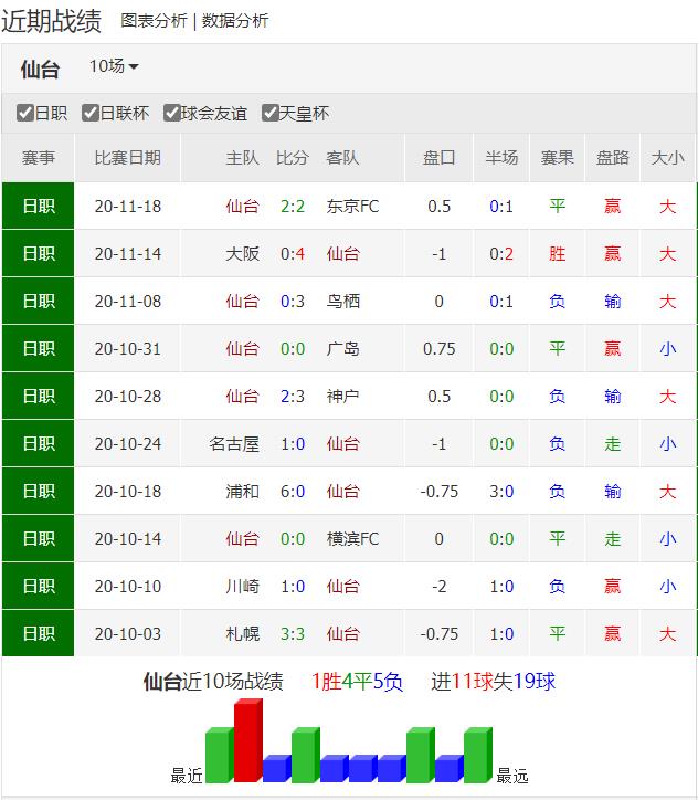 仙台七夕是今季令人最失望的球队之一,特别是主场的发挥上,攻守严重失衡,主场积分还是个位数,加上在双方往绩处于绝对劣势,仙台七夕主场沦陷在所难免。