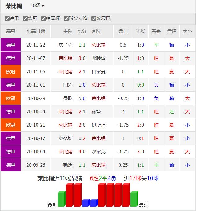 客队的德国劲旅莱比锡红牛是上赛季德甲季军,欧冠四强。本赛季欧冠3场小组赛拿到6分暂列H组第2。上一场联赛客场1比1与法兰克福战平,小组赛首回合主场2比1击败巴黎圣日尔曼,最近3个客场只取得1平2负战绩不理想,客场状态不占优。
