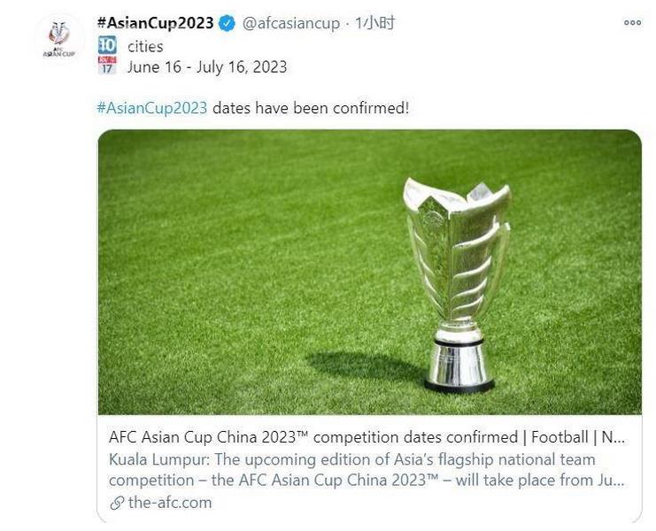球掌门获悉:亚足联及亚洲杯中国组委会今日公布2023中国亚洲杯举办时间,2023年亚足联中国亚洲杯将于2023年6月16日至7月16日在北京、天津、上海、重庆、成都、西安、大连、青岛、厦门和苏州等10座城市举行。