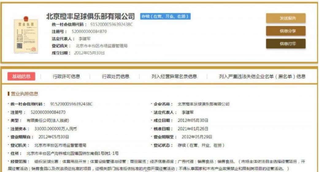根据国家企业信息公示系统查证,1月26日北京人和俱乐部已经将名称变更为“北京橙丰足球俱乐部”。最近有消息称,北京人和已经补齐了拖欠球员的薪水,并且很可能以递补身份重返中甲。