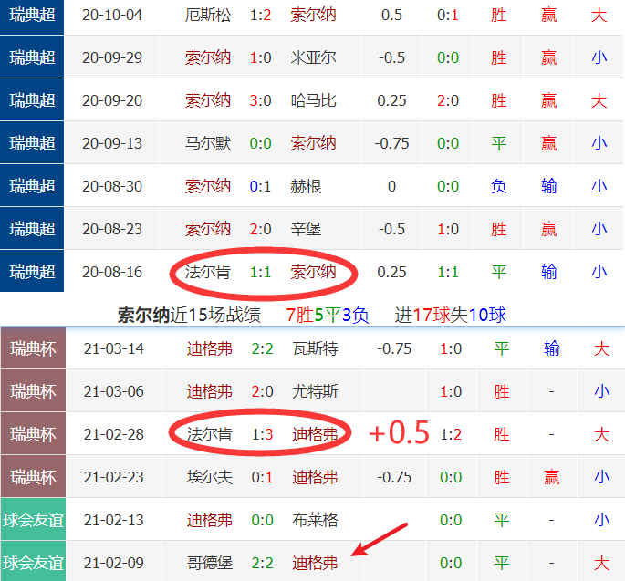 在瑞典杯中代格福什让法尔肯客让半球,而上赛季索尔纳让法尔肯也仅仅是开出客让平半,足见机构对客队实力定义并不低。如果以此作为参考点,那么本场索尔纳开出平半也是可以的,也就是说本场让半球没有毛病,上盘涨水还非常合适。另外代格福什最近活动的几战表现并不低,所以本场让半球我不是偏向主队。