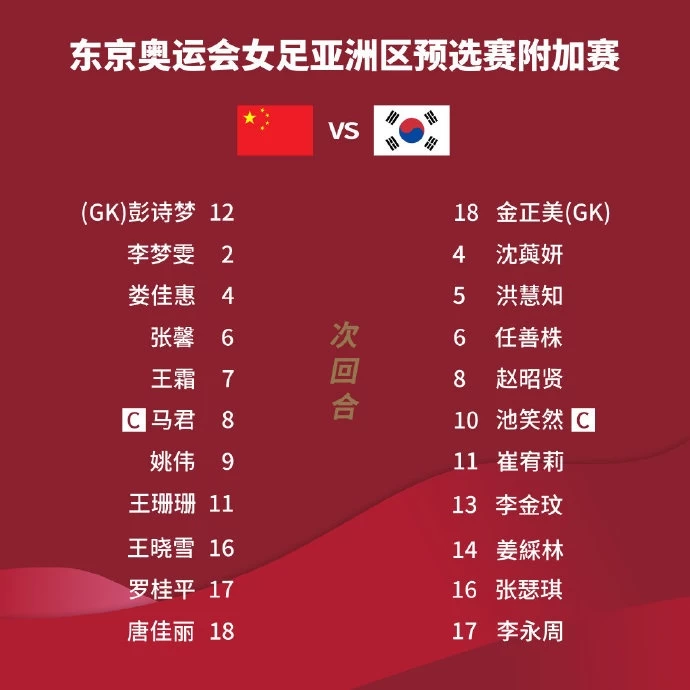 球掌门4月13日获悉:北京时间4月13日16:00,东京奥运会女足亚洲区预选赛附加赛次回合,中国女足主场对阵韩国女足。目前双方已经公布了本场比赛的首发阵容。