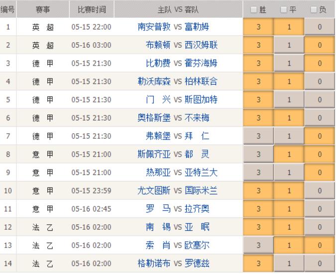 053期足彩头奖开出13注,单注奖金848002。本期胜负彩14场赛事主要由欧洲主流联赛场次组成,其中德甲5场占比最大,此外还有意甲4场,英超2场,法乙3场。下面我们就本期的足彩比赛做出分析。
