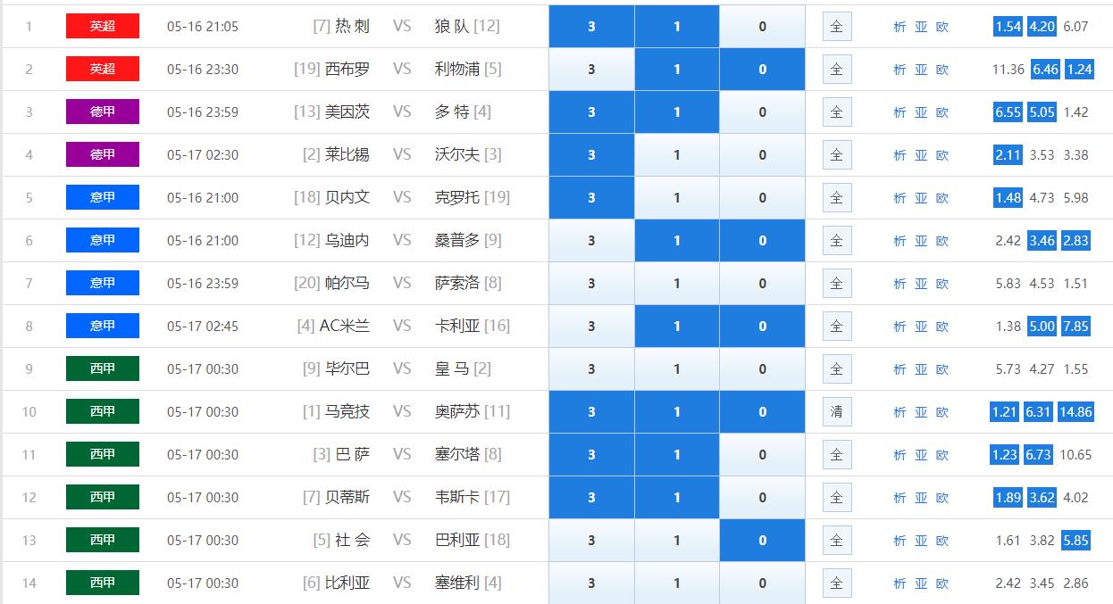 10、意甲 尤 文 VS 国 米,推荐310全包,国际米兰虽然已经提前夺冠,但是目前好像并没有放弃抢分,加上尤文意甲统治那么多年,其他球队都以战胜尤文为荣,本场比赛还是建议310全包。