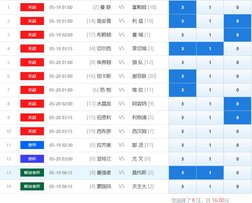 曼联争冠无望但提前锁定欧冠席位,无欲无求。而富勒姆方面已提前降级,本场联赛战意未知。两队3次交锋中曼联全胜,期间2次净胜超过1球。根据数据方面给予主队一定支持力度,本场无疑首选主胜。