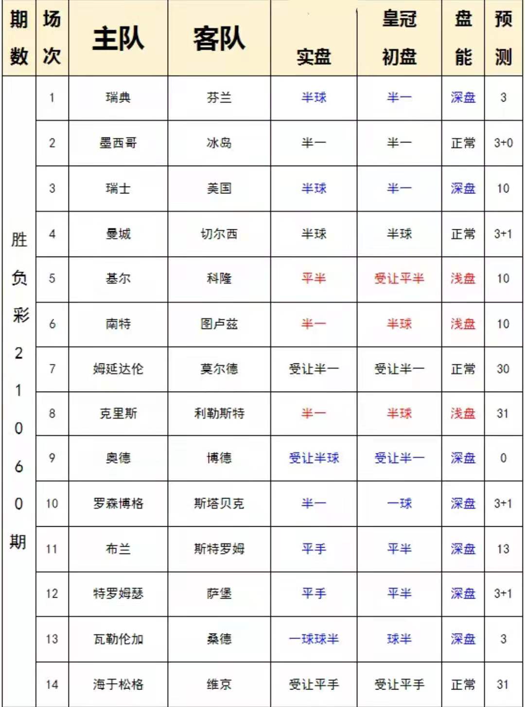 本期量化的笋盘有9场,预测上的310代表胜平负,前一位的是首选,带+号的是表示前一位可以博胆,下图这个表格最近有不少新朋友来问我是怎么看,简单说下吧,下图的实盘是根据球队的各种因素量化出来的盘面,以让球方判断盘面深浅,通过与庄家的实盘对比,还是有助于揣摩庄家的开盘意图,找出深让或者浅让的题材来就会达到事倍功半的效果,总之庄家给你信心的时候一定要小心了,各位还是好好揣摩下吧!