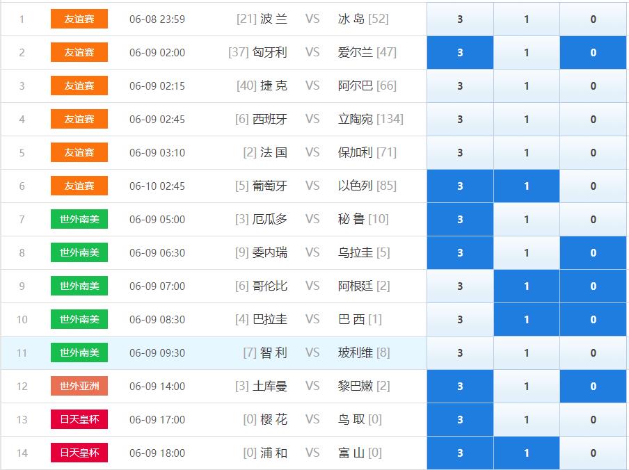 首页/ 赛事正文21064期的世亚预、世南美预、国际友谊和天皇杯的比赛组成。国际友谊赛方面西班牙因新冠换成U21代表出战。本期深度让步的比赛场次较多,而且比赛有很强的战意,本期难点在防范冷门身上,整体的难度中等。