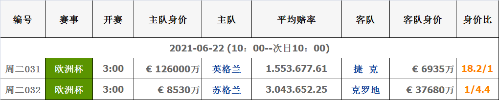 6月22日|球队对阵数据信息身价表