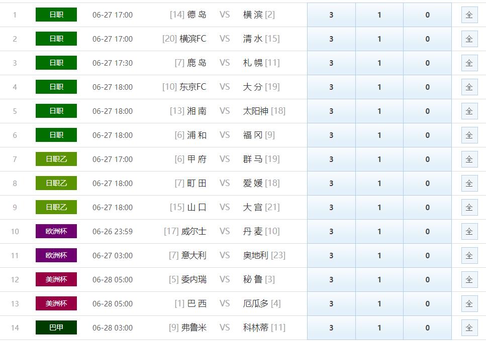 首页/ 赛事正文本期日本联赛+欧洲杯淘汰赛+美洲杯+巴西甲的组合,难度相当大。大多数彩民肯定有以下几点疑问1.意大利本场会继续势如破竹90分钟内解决奥地利吗?2,巴西美洲杯已经取得3连胜,上轮补时9分钟绝杀对手,本轮巴西还会赢球吗?3.日本连胜本轮让半球较多,有几场适合做胆呢?解决好以上几点疑问,相信本轮离中奖不远。