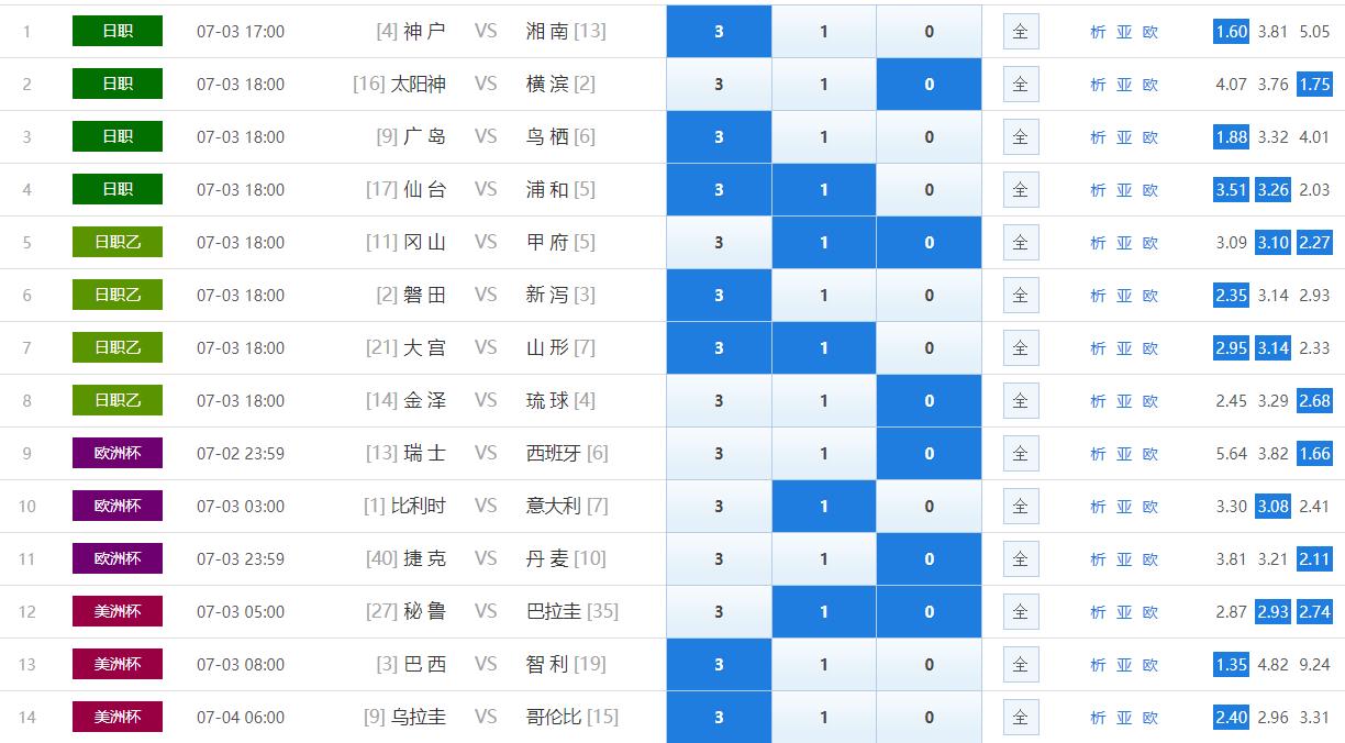 2、日职联 柏太阳神VS横滨水手 (建议0)
